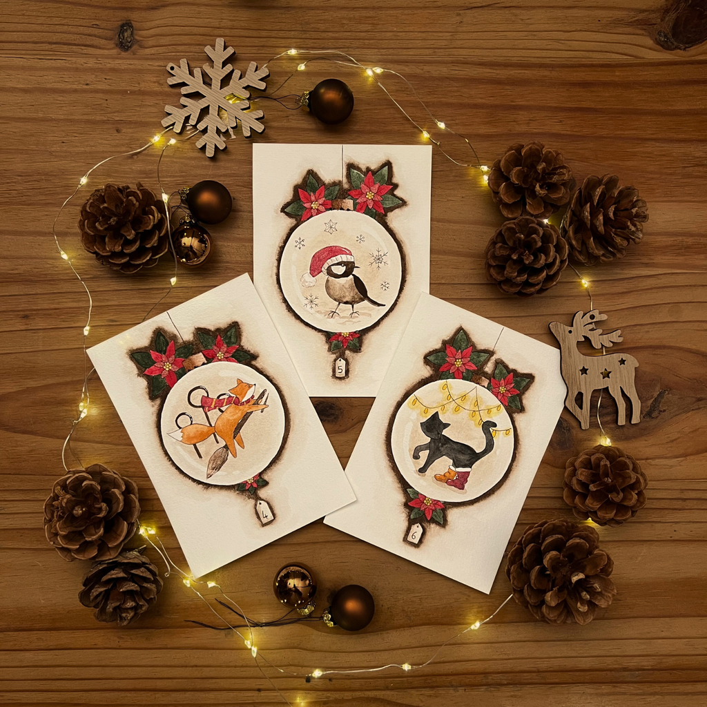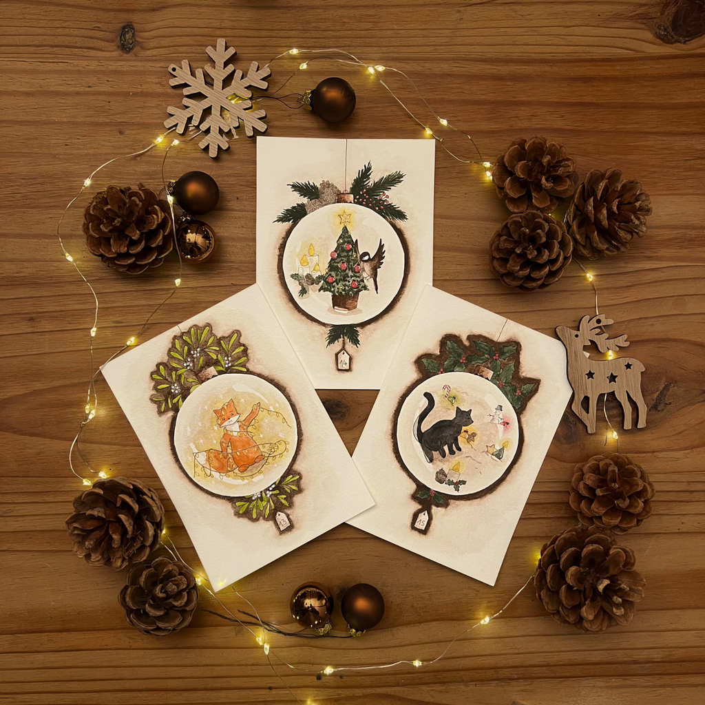 Ici reposent les aquarelles des saisons passées, souvenirs délicatement conservés. Elles ne sont plus disponibles à l’atelier, mais leur histoire continue de murmurer.